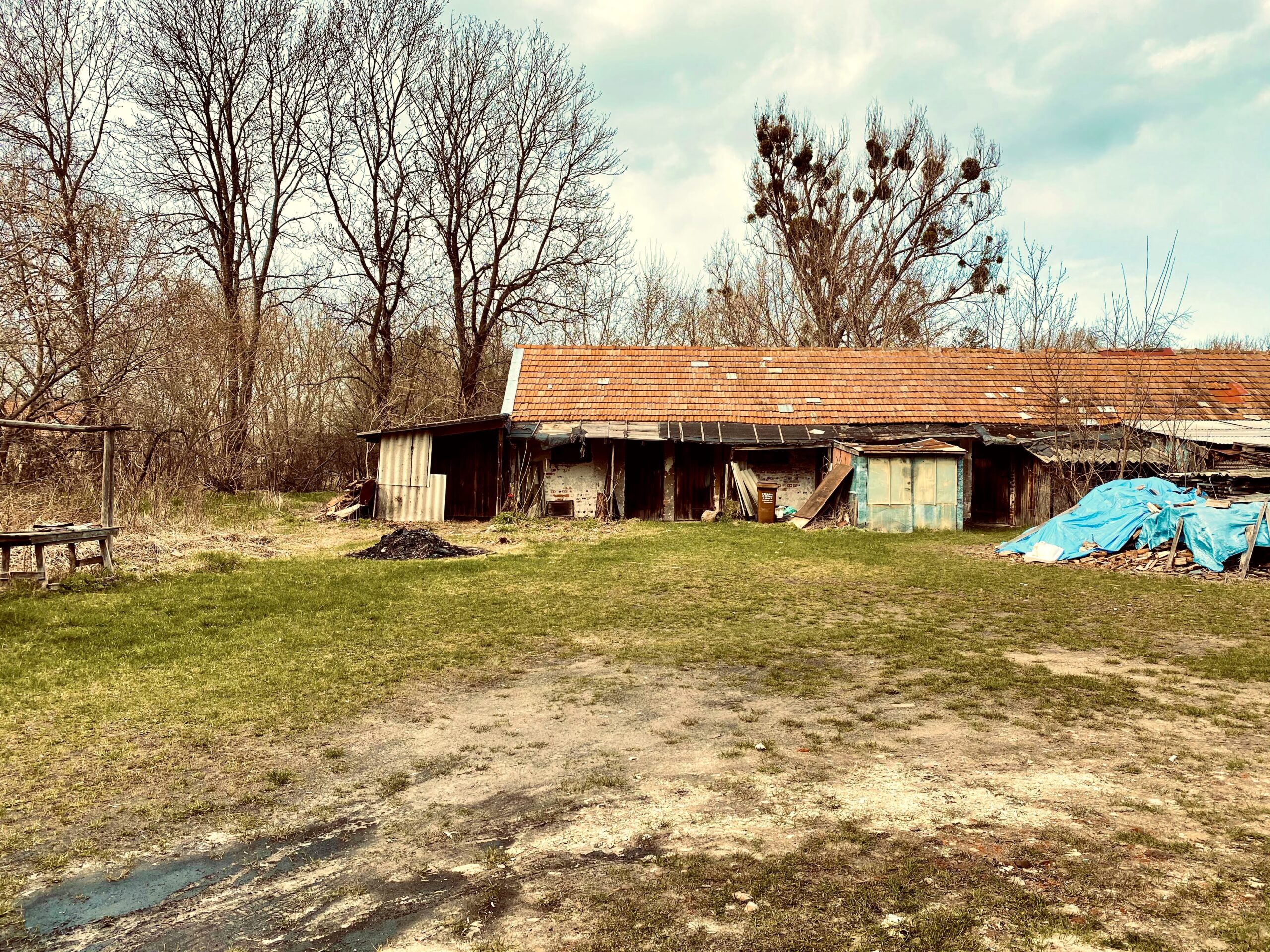 Dach pokryty blachą, nie przeciekający, dwuspadowy.