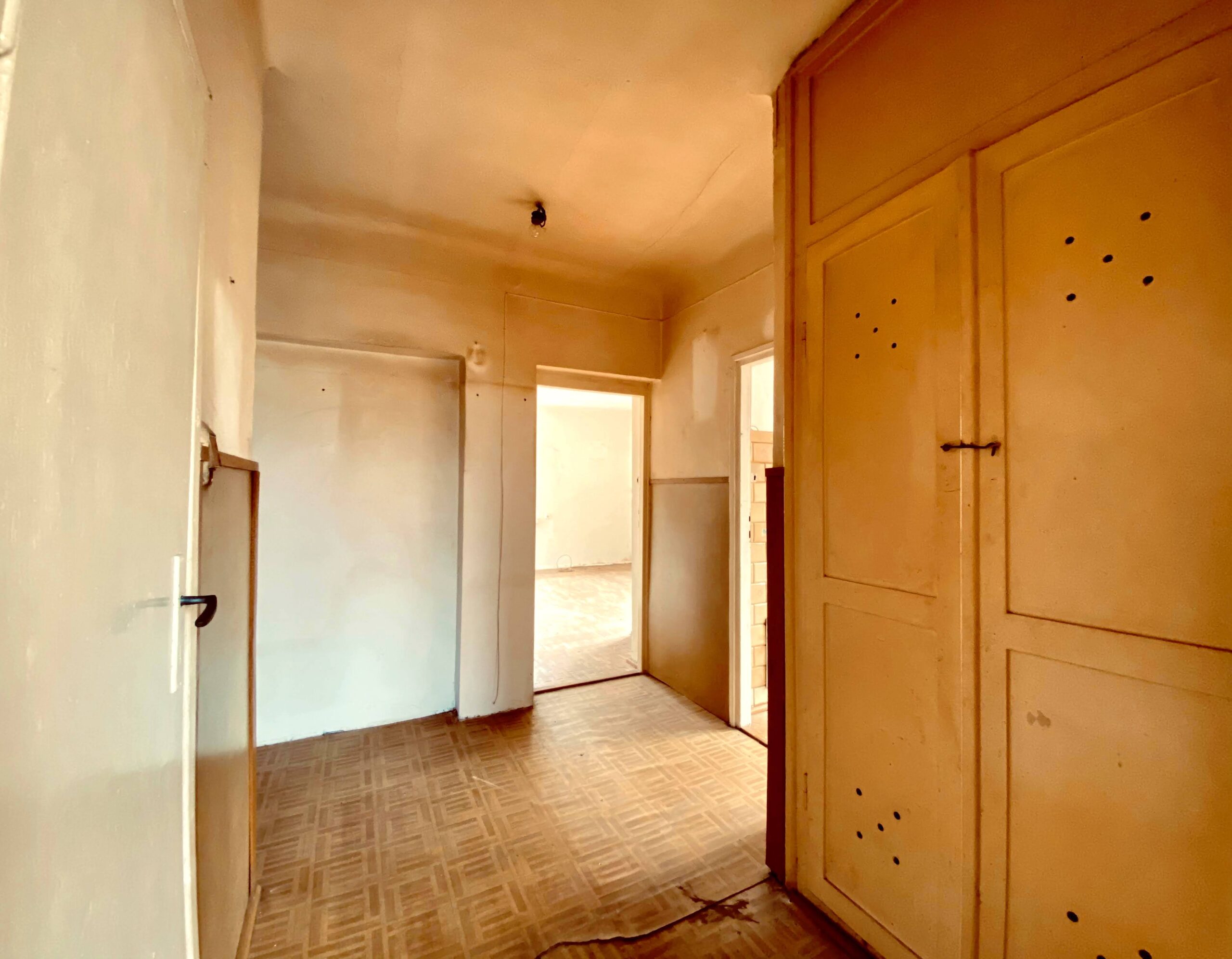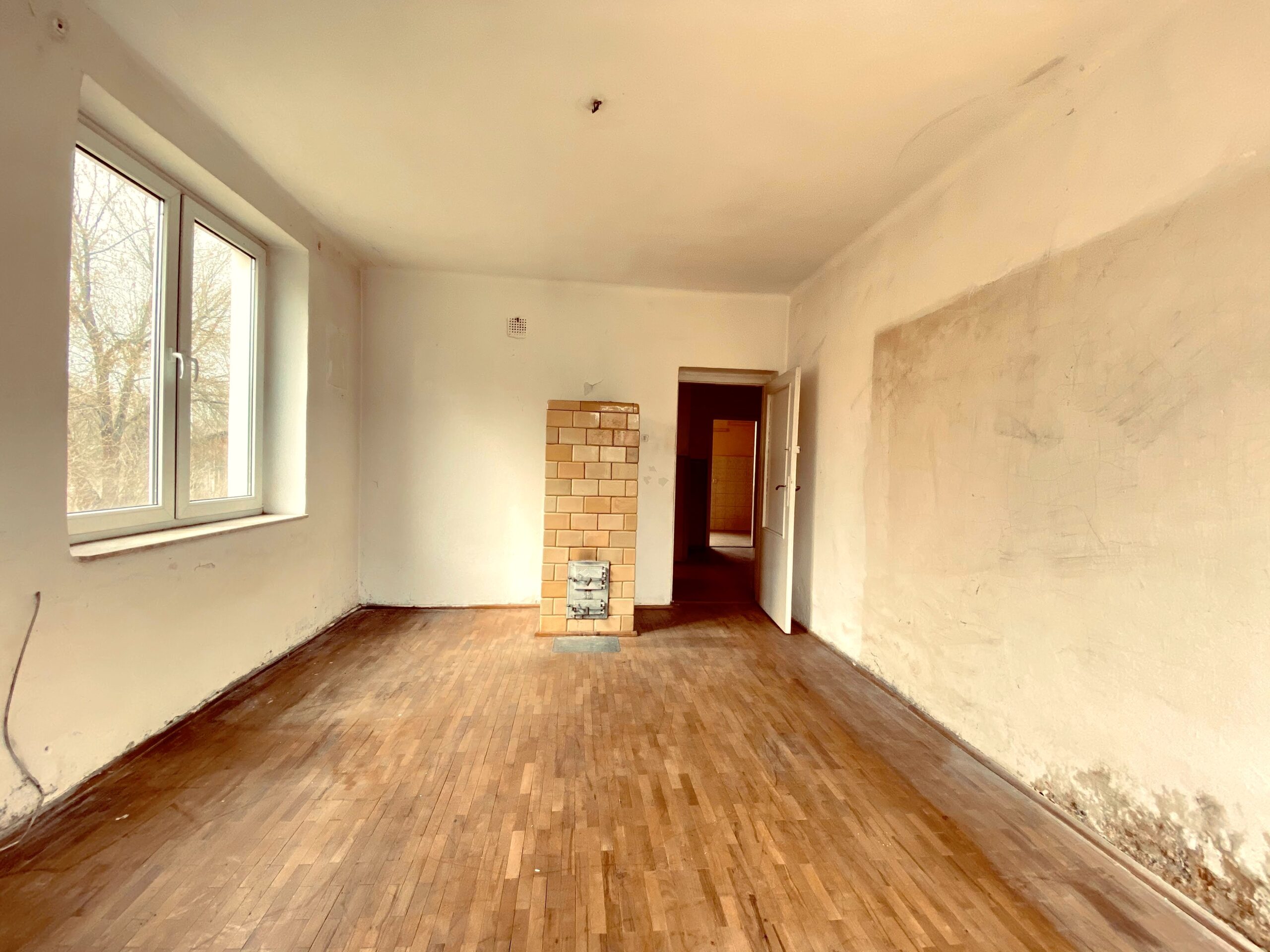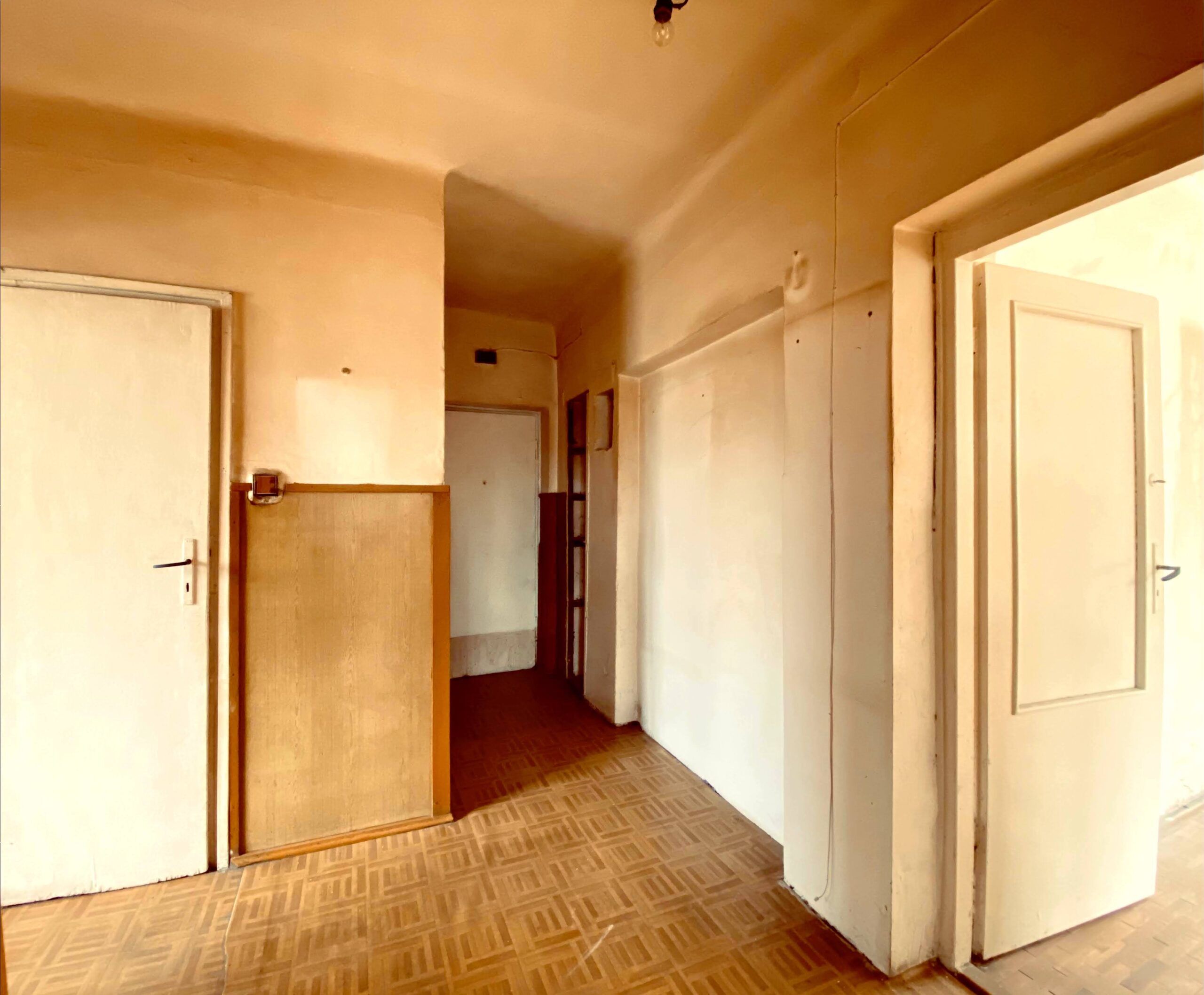 Mieszkanie o powierzchni ok. 48 mkw. (74,7 mkw wg KW), na co składa się: 2 pokoje, kuchnia, łazienka, przedpokój oraz piwnica, komórka.