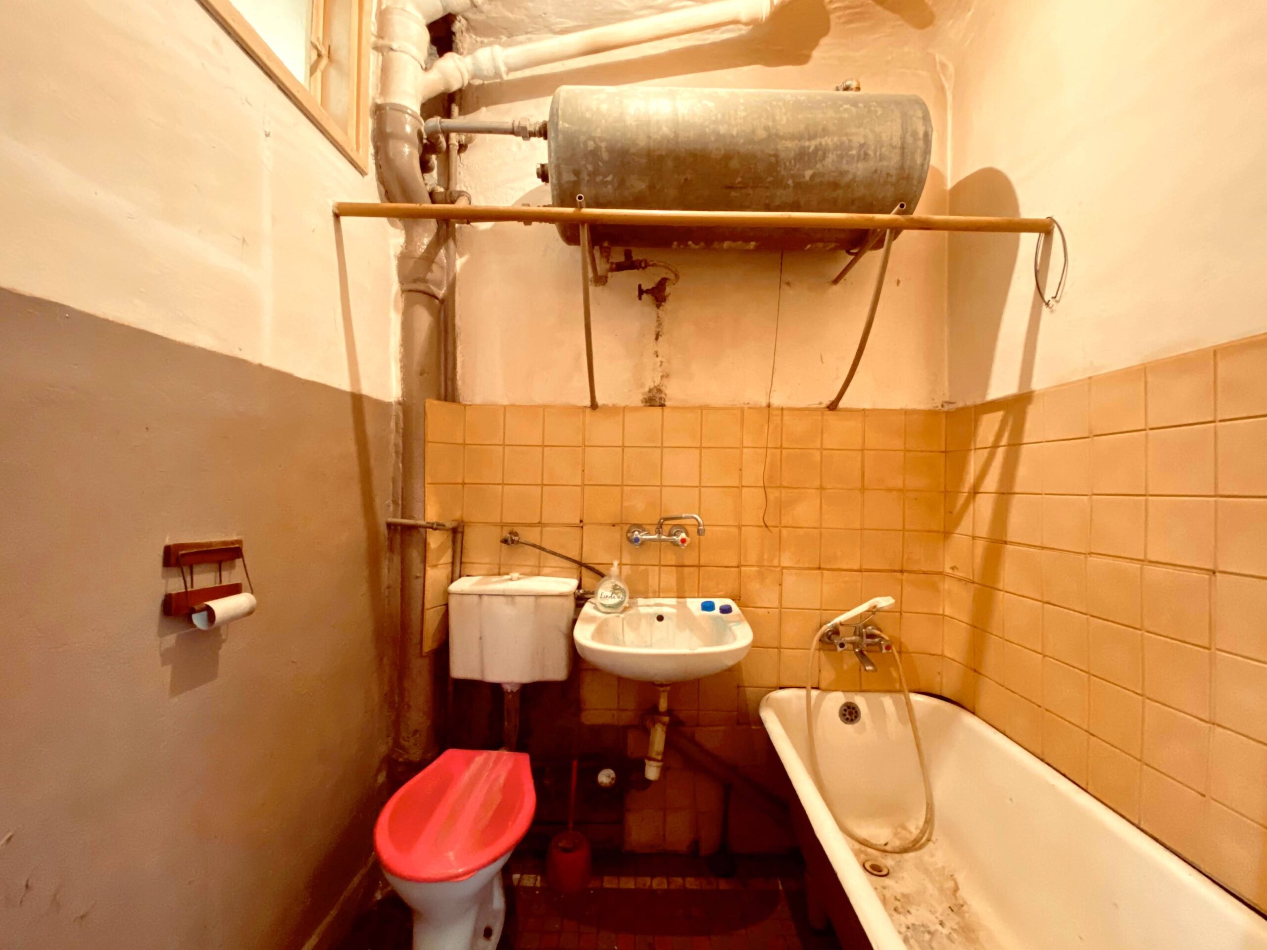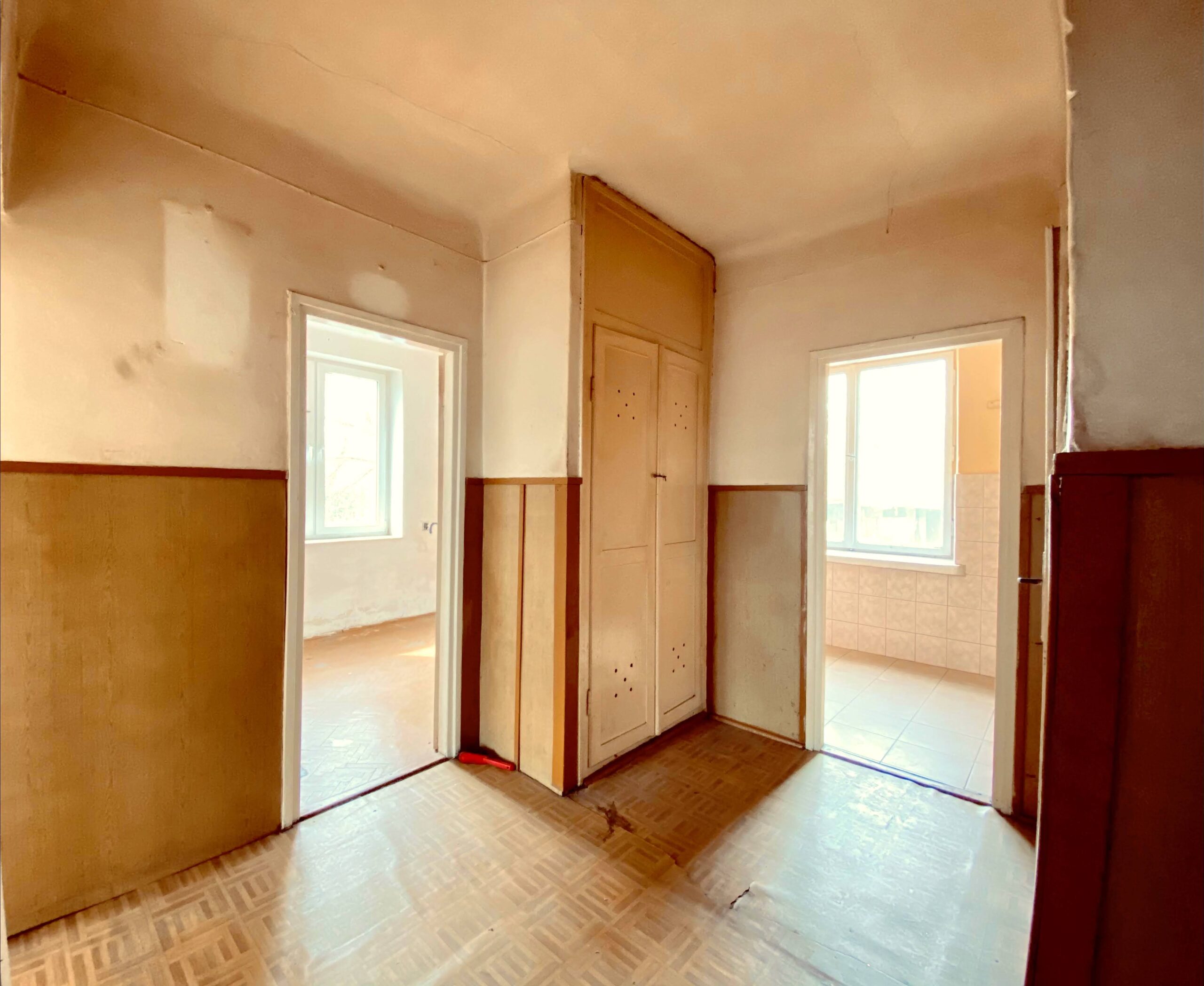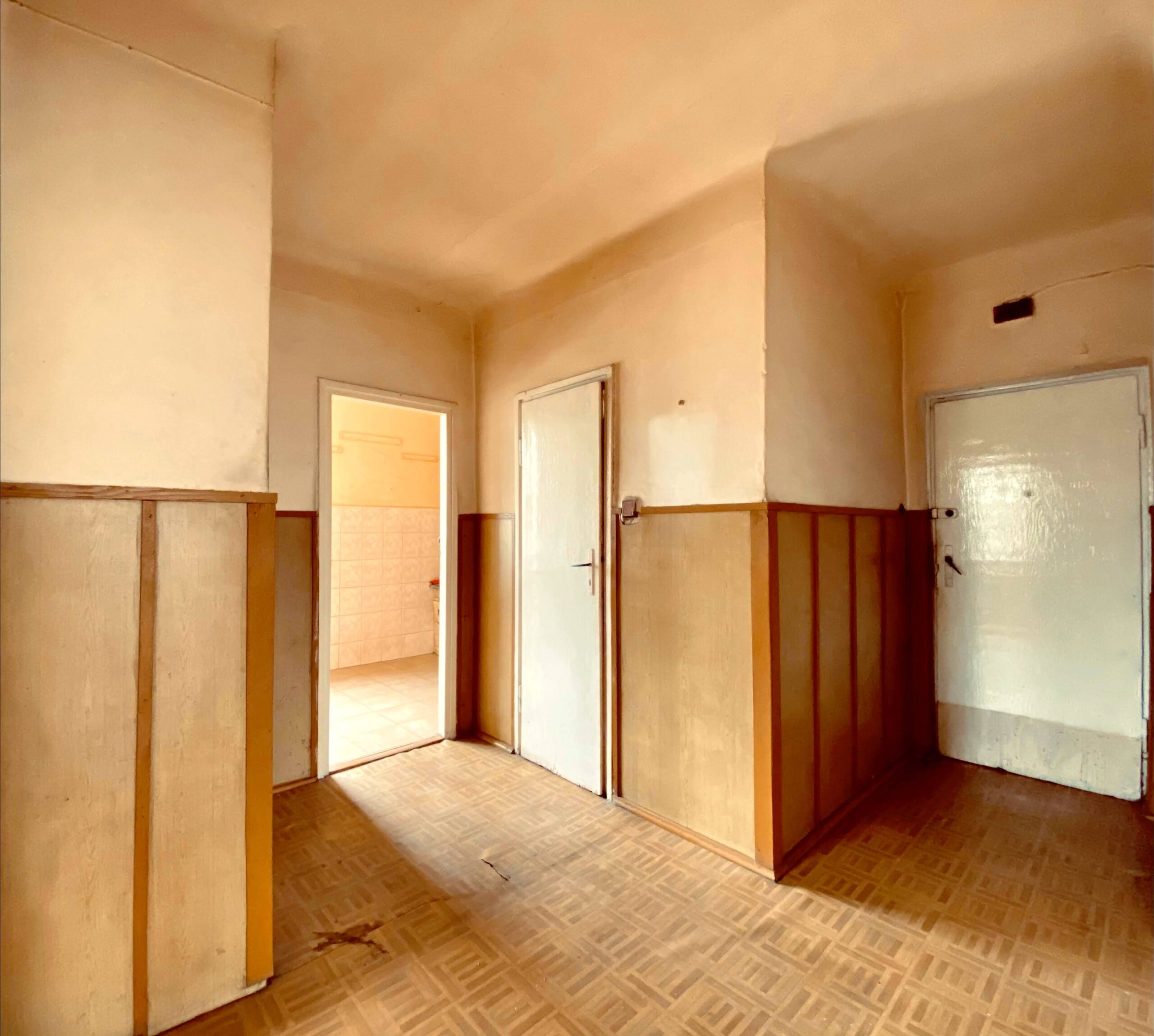 Mieszkanie o powierzchni ok. 48 mkw. (74,7 mkw wg KW), na co składa się: 2 pokoje, kuchnia, łazienka, przedpokój oraz piwnica, komórka.
